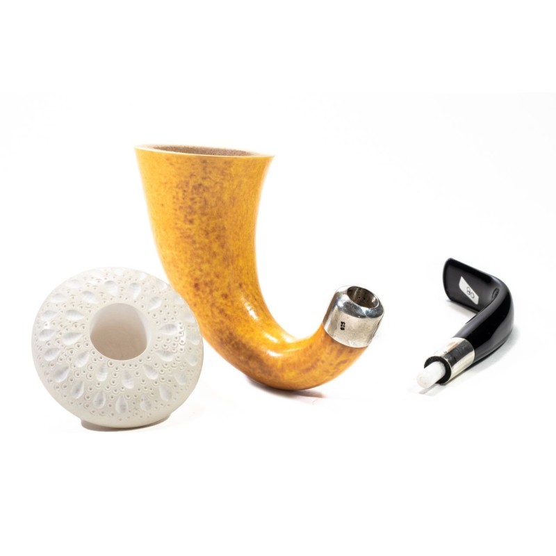 CPW Calabash Smooth Natural, Color: Light Brown, Meerschaum Rusticated Cap, double True in Silver, without filter, tailored hard case in red leather, Made in Turkey.