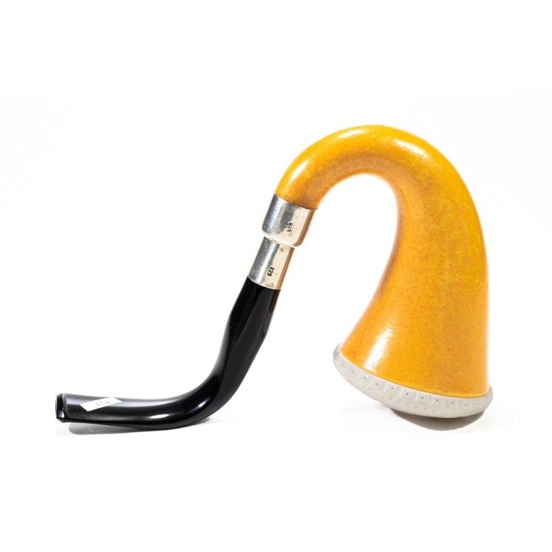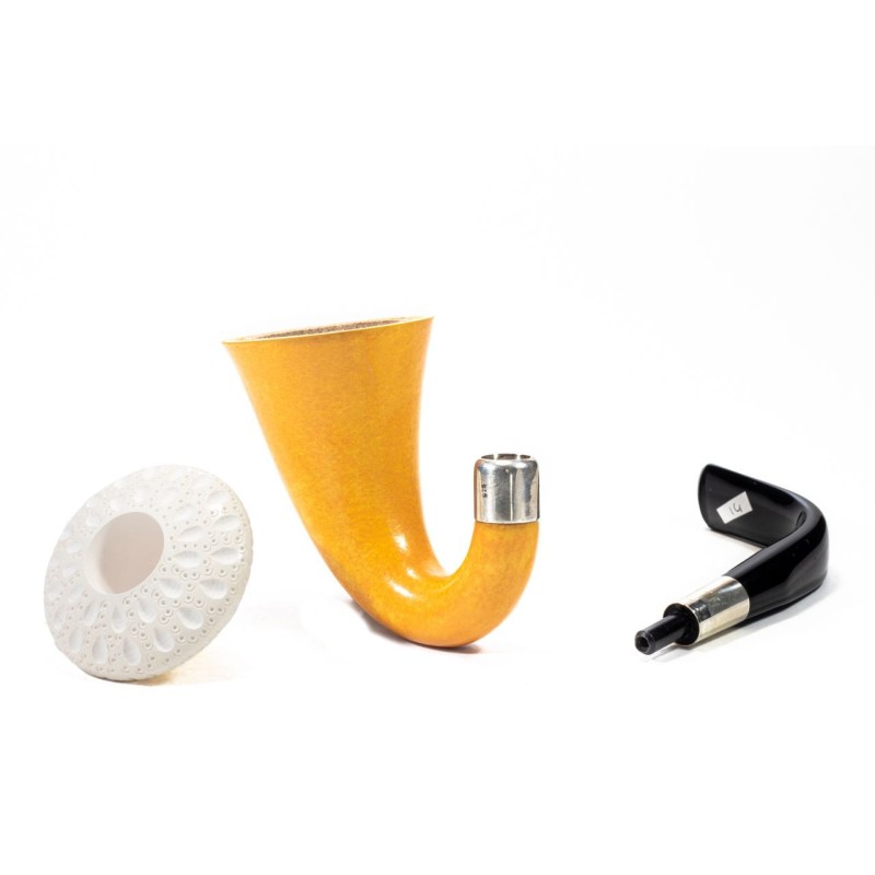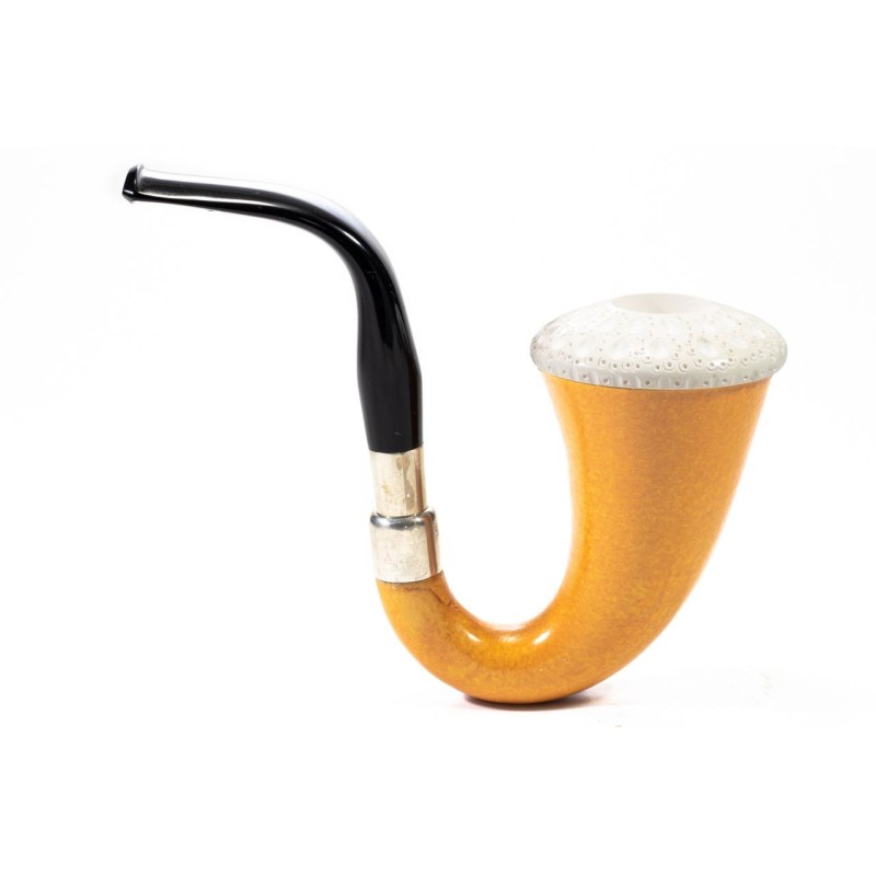CPW Calabash Smooth Natural, Color: Light Brown, Meerschaum Rusticated Cap, double True in Silver and Briar, without filter, tailored hard case in red leather, Made in Turkey.