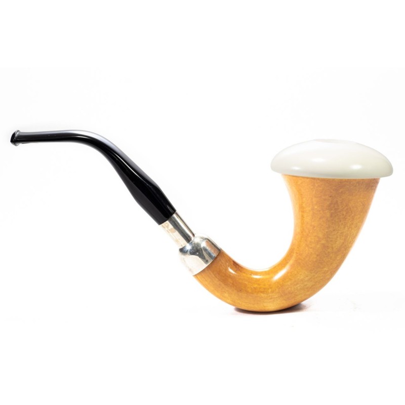 CPW Calabash Smooth Natural, Color: Light Brown, Meerschaum Smooth Cap, double True in Silver, without filter, tailored hard case in red leather, Made in Turkey.