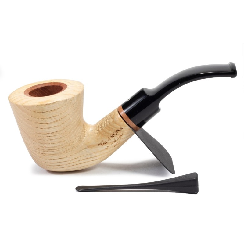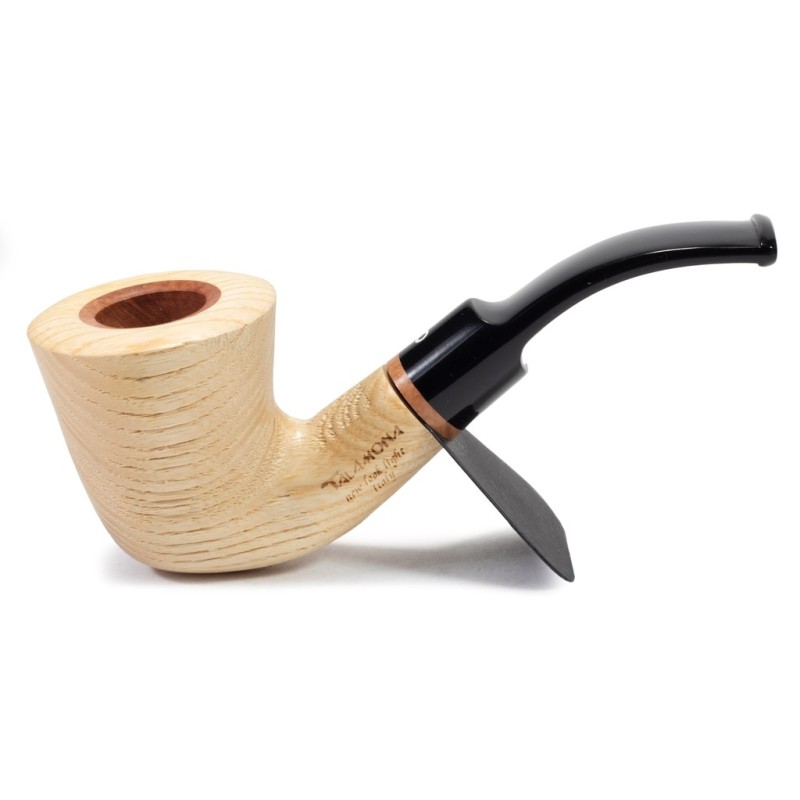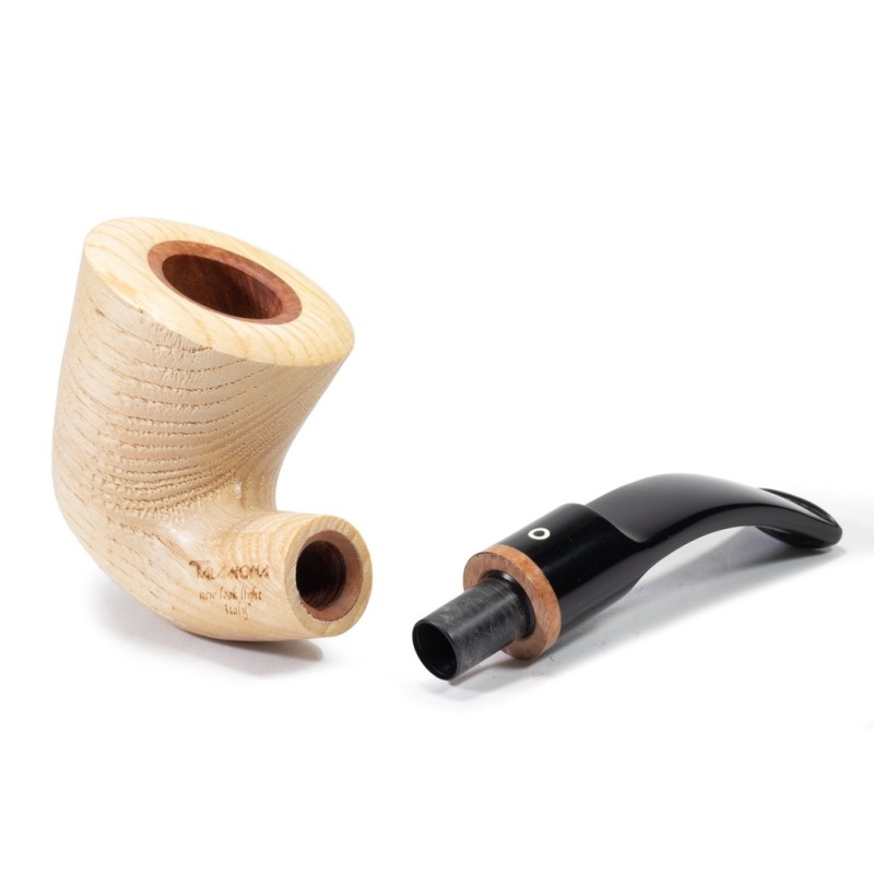 Talamona New Look Light Sandblasted, Model 807, Color: Light Brown, Smooth Rim, internal chamber in Briar, insert on stem in Briar, saddle stem, without filter, bag and original box, Made in Italy.