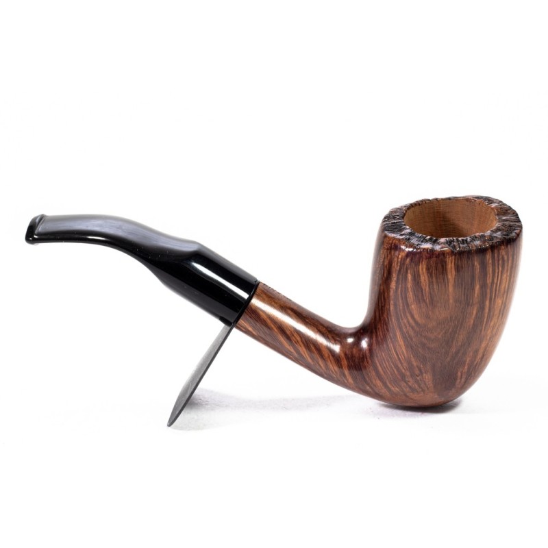 Brebbia Collection Pura LP Smooth, Model 16E, Rusticated Rim, saddle stem, without filter, bag and original box, Made in Italy.