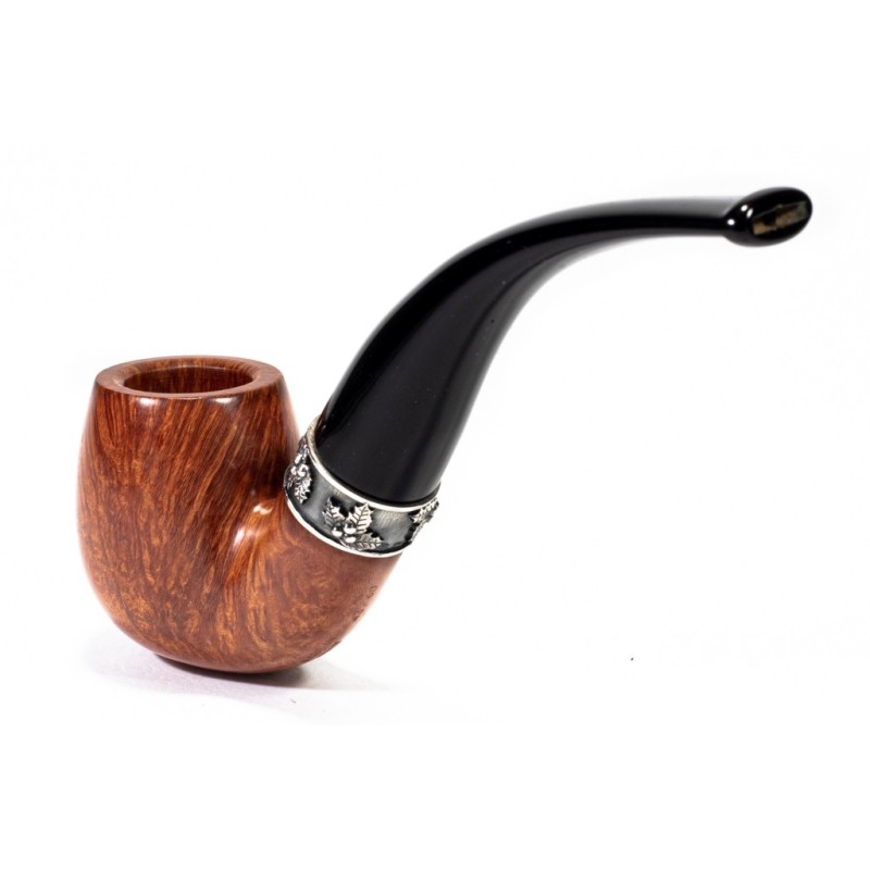 Savinelli Christmas Smooth, Model 613, Pipe N° 43 of 60, Year 2025, Color: Brown, Elaborated True in Sterling Silver ring engraved with the traditional holly motif, filter 6mm with adapter, bag and original box, Made in Italy.