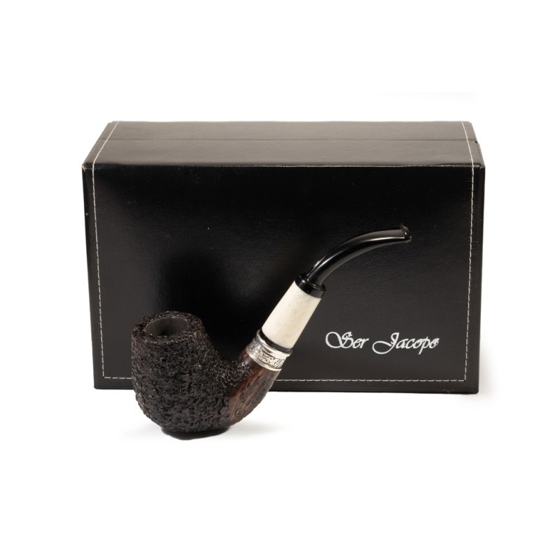 Ser Jacopo Historica 2026 Picta Picasso 11 Rusticated R1, Pipe N°28, Color: Black, Elaborated True in Silver with "Ser Jacopo" Engraving, insert on stem in Galalith, saddle stem, without filter, bag and original box. Made in Italy.