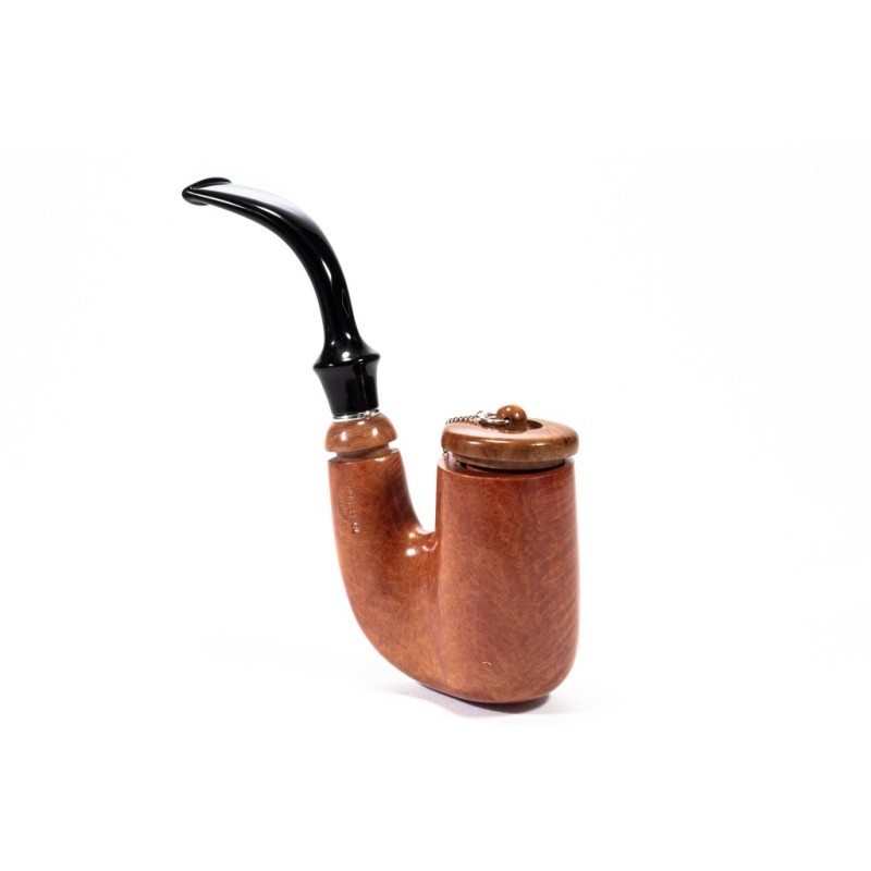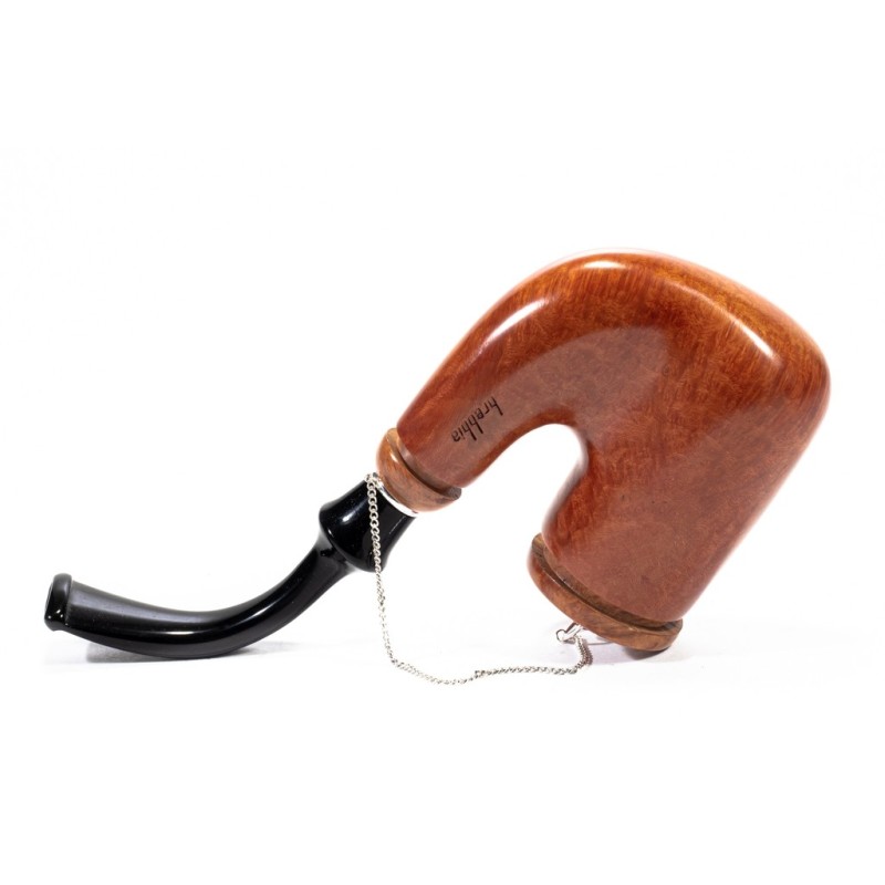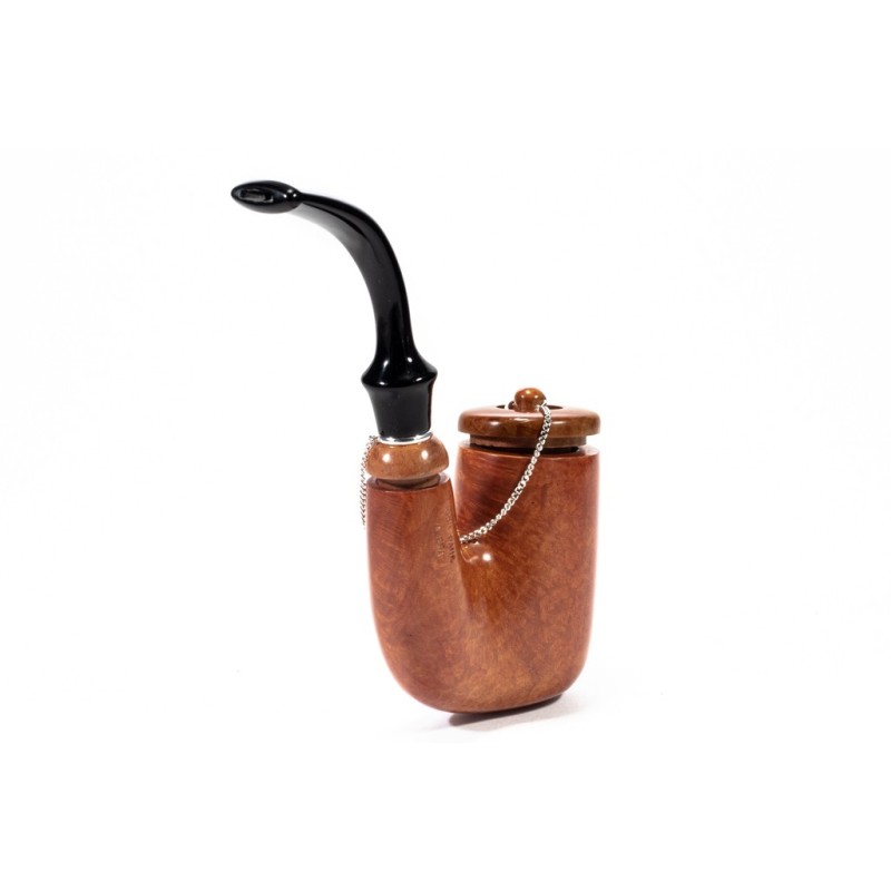 Brebbia Oom Paul Ambra Smooth, silver chain, Cap and true in Briar, saddle stem, filter 9mm with adapter, bag and original box, Made in Italy.