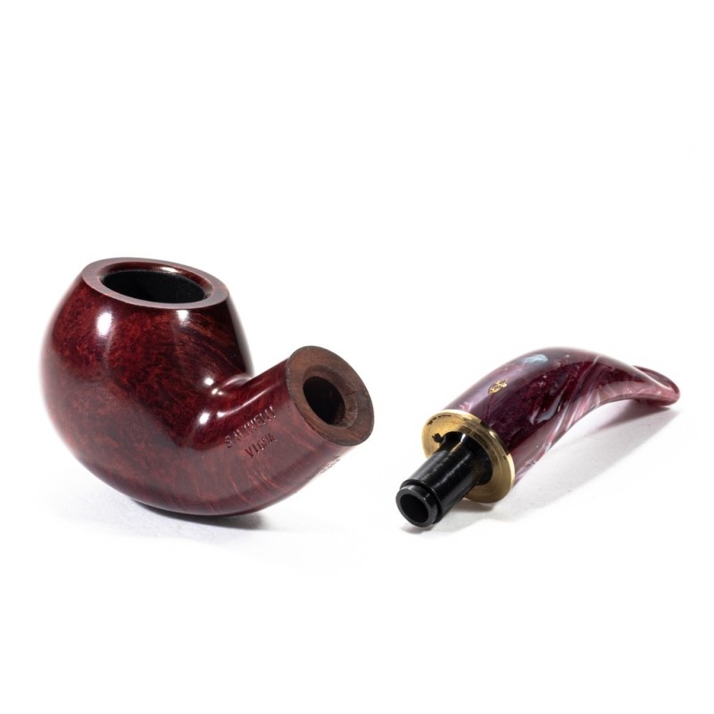 Savinelli Vigna Smooth, Model 642, Color: Bordeaux, Aluminum golden True, filter 6mm with adapter, bag and original box, Made in Italy.