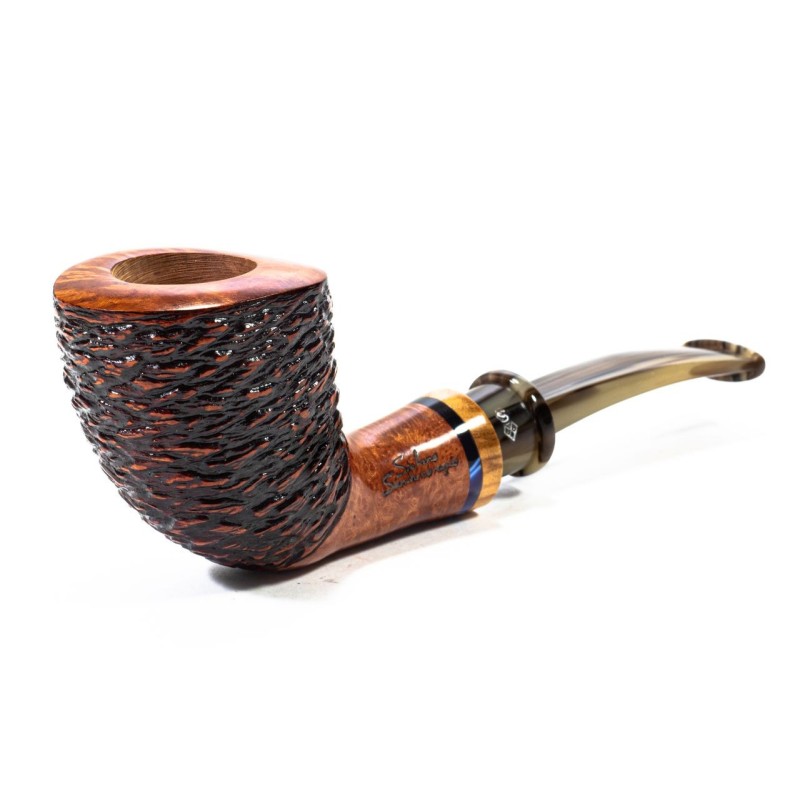 Santambrogio Rusticated Medium, Color: Brown, Smooth Rim, True in Boxwood and Acrylic, saddle stem, without filter, Made in Italy.