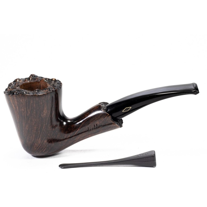 Brebbia Collection Pura LP Smooth, Model 16B, Rusticated Rim, filter 9mm with adapter, bag and original box, Made in Italy.