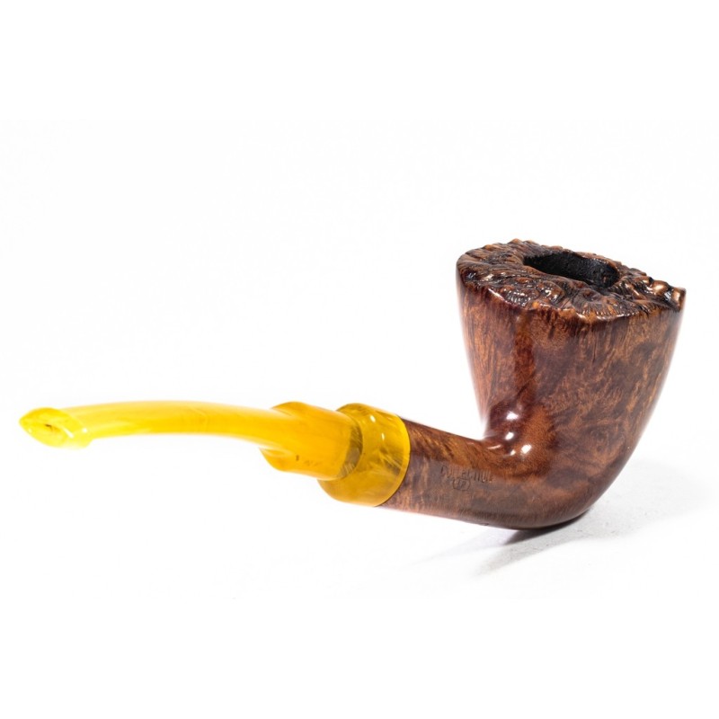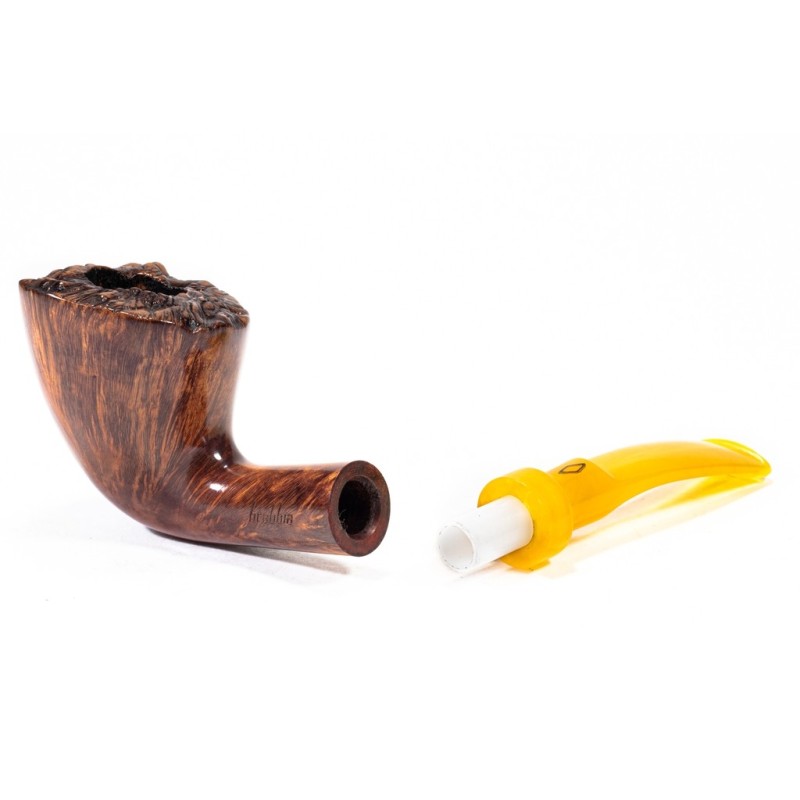 Brebbia Collection Pura LP Smooth, Model 16C, Rusticated Rim, saddle stem, filter 9mm with adapter, bag and original box, Made in Italy.