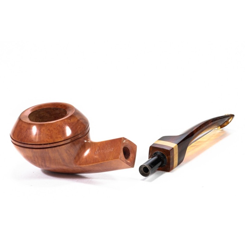 Brebbia 1960 "Pura" Smooth, Model 623, Color: Light Brown, Insert on stem in Briar, saddle stem, without filter, bag and original box, Made in Italy.