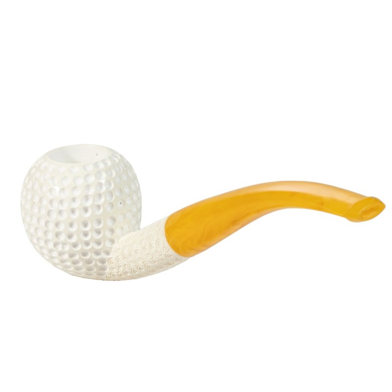 Meerschaum Pipe, Handcrafted, Model B 203 Golf Ball, without filter, tailored hard case in red leather.
