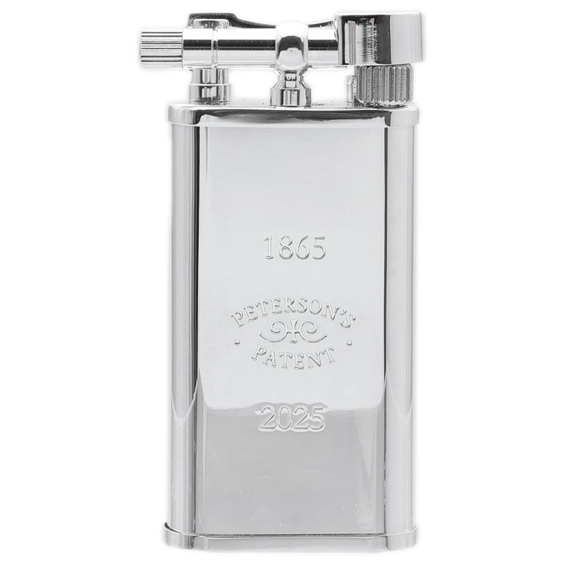 Peterson 160th Anniversary Flint Pipe Lighter, Silver Plated, Soft Flame 45°, Color: Chrome, original box.