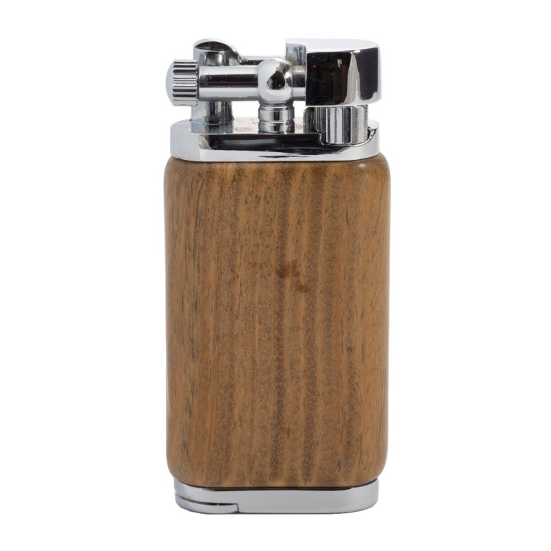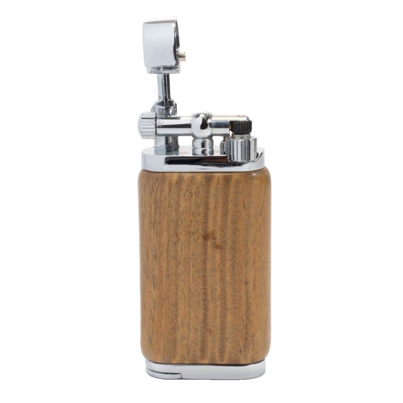Lubinski Professor Flint Pipe Lighter with Elm Wooden Cover, Soft Flame 45°, with Pipe Tamper, Color: Light Brown.