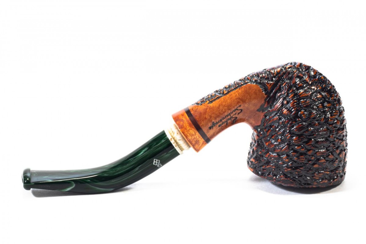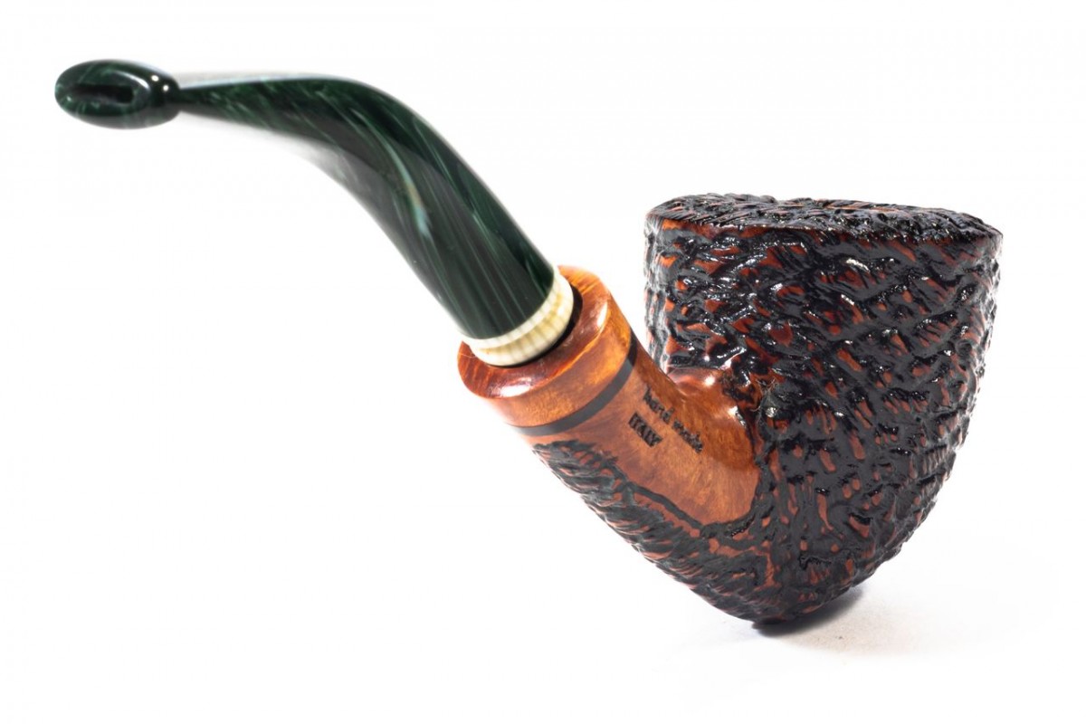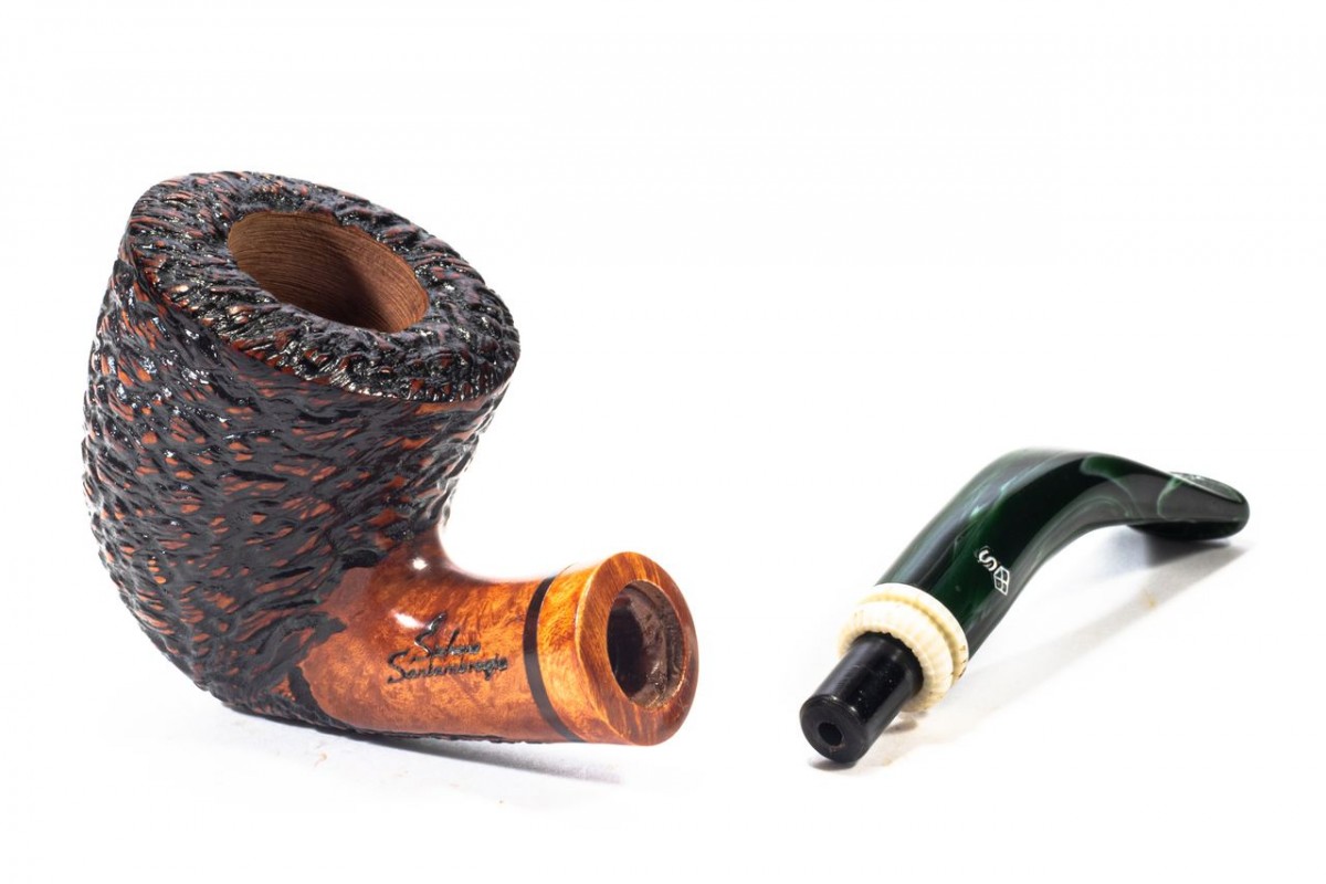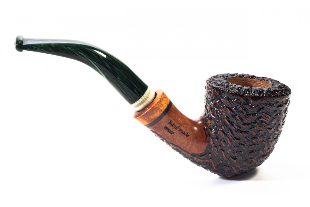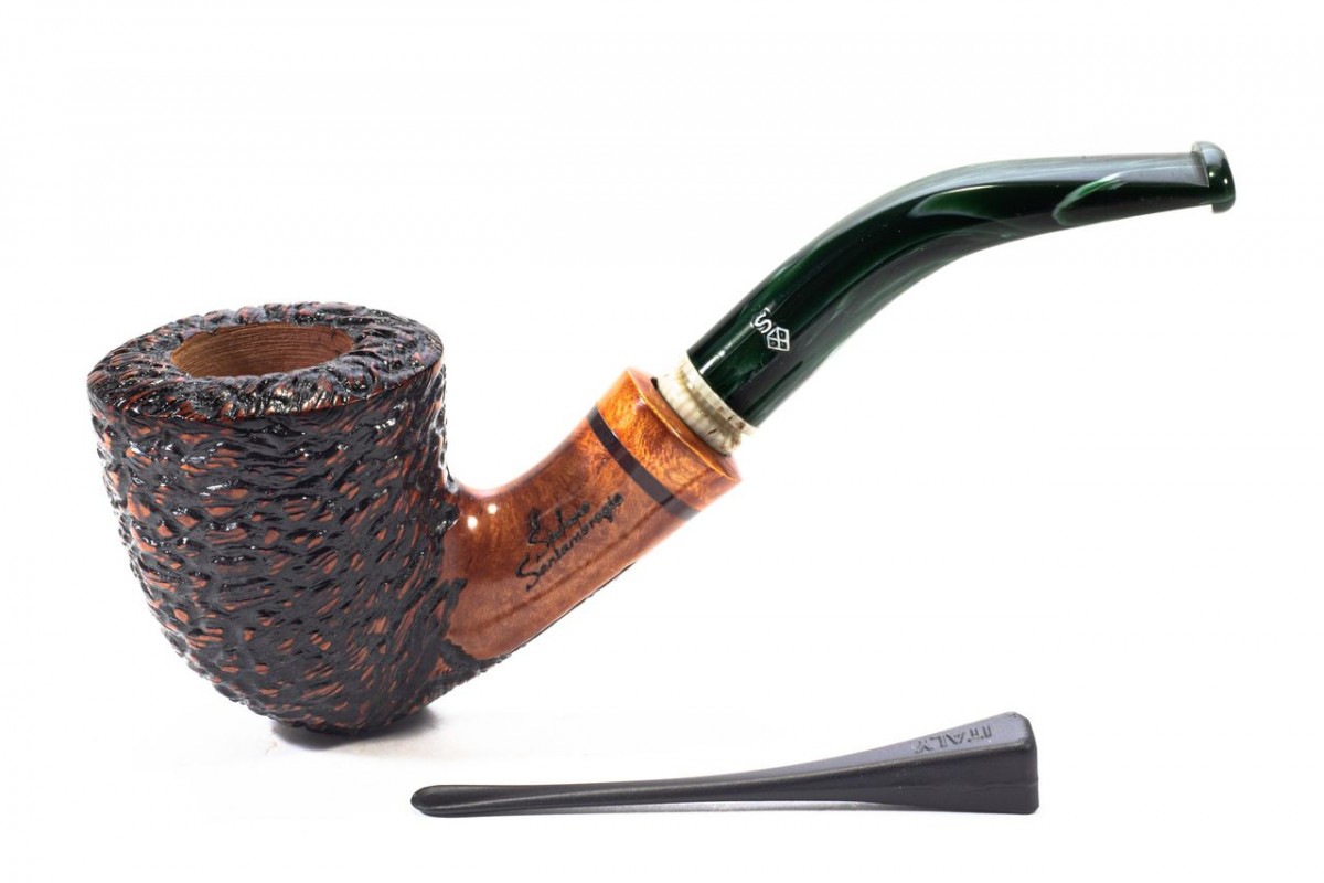 Santambrogio Rusticated Medium, Color: Brown, True in Briar, insert on stem in Galalith, without filter, Made in Italy.