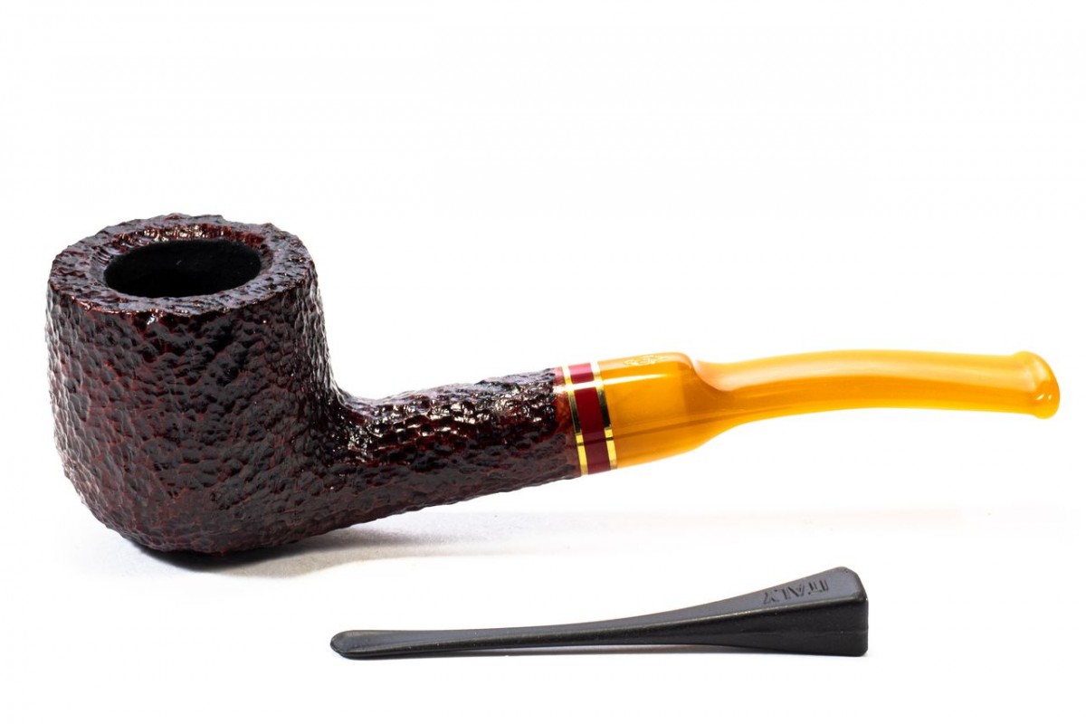 Savinelli Saint Nicholas 2024 Rusticated, Model 121 KS, Color: Brown, Double True in Bass and Acrylic, saddle stem, filter 6mm with adapter, bag and original box.