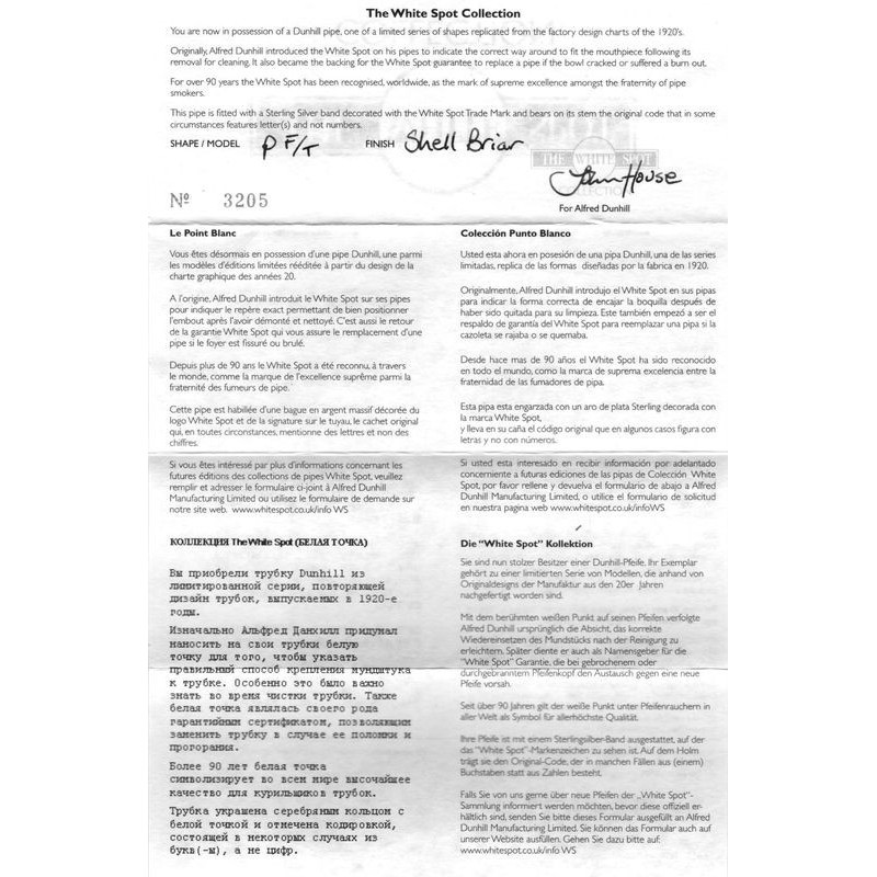 Dunhill Pipe The White Spot P F/T Shell Briar