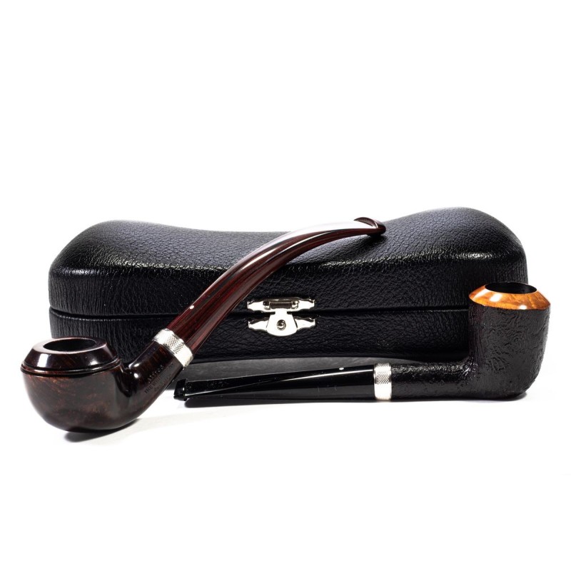 Set Of 2 Pipes Dunhill Mary Dunhill Shell Briar Group 3 Sandblasted & Chestnut Group 2 Smooth, Set N°13 of 15, Model 3105 (Dublin) and 2308 (Bent Rhodesian Rhodesian), Year 2022, Elaborated True in Silver, without filter, Warranty and authenticity Certificate and original box.