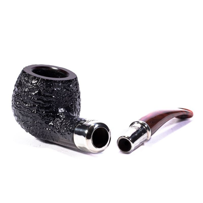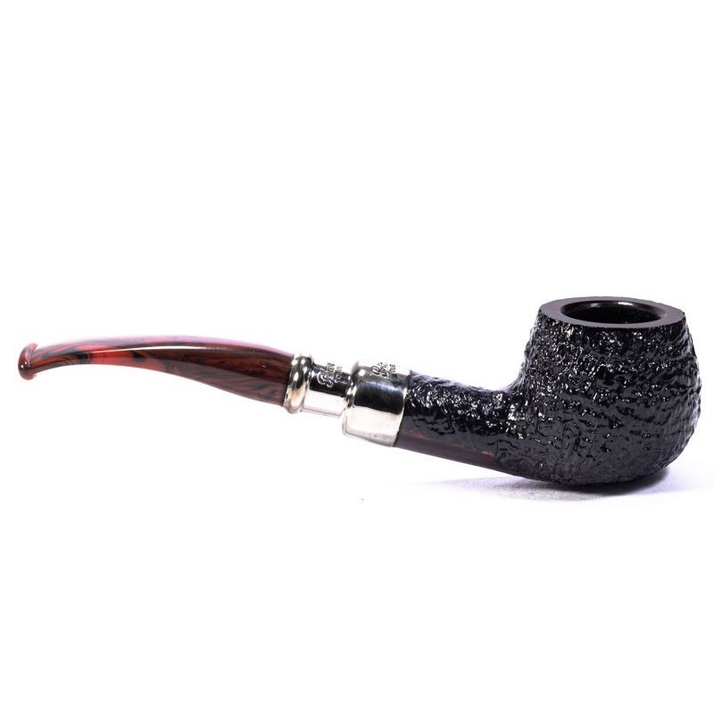 Peterson Newgrange Spigot Sandblasted, Model 406, Color: Black, Smooth Rim, Punching Peterson of Dublin on double True in Silver, grafting to flock, without filter, bag and original box