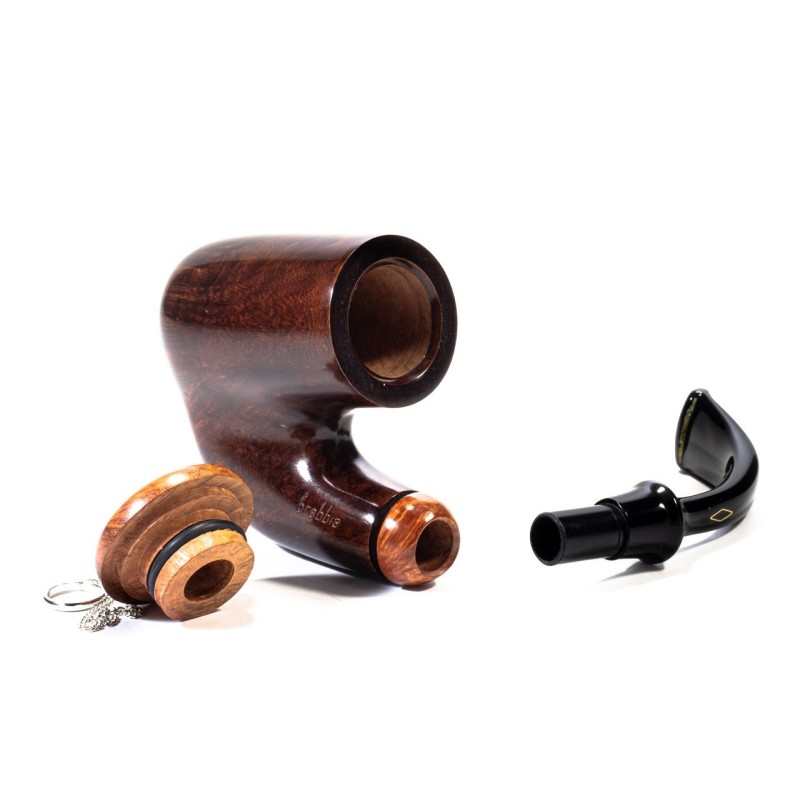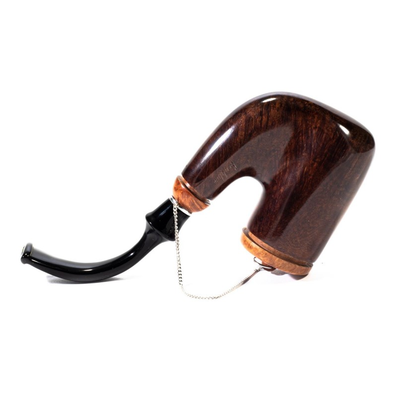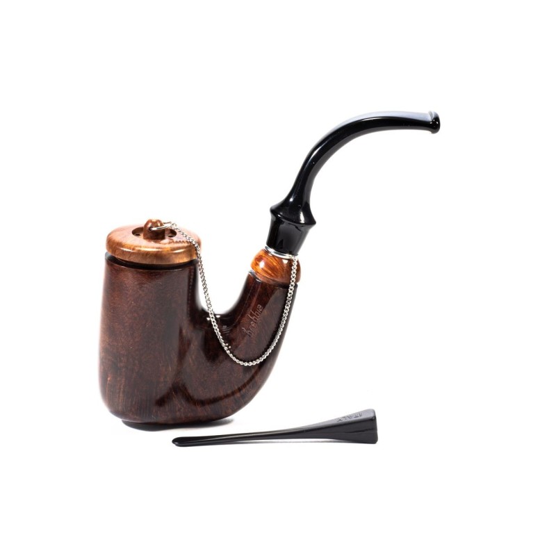 Brebbia Oom Paul Smooth Walnut, silver chain, Cap and True in Briar, saddle stem, filter 9mm with adapter, bag and original box, Made in Italy.