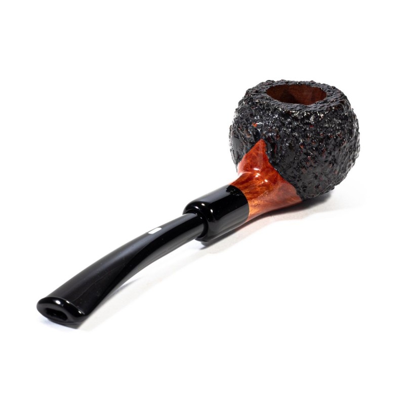 Castello Sea Rock Briar KK Rusticated, Model 24, Color: Brown, punching Kino, grafting to flock, stem slightly curved and tapered, without filter, Box with original pipe bag and warranty certificate, Made in Cantù, Italy.