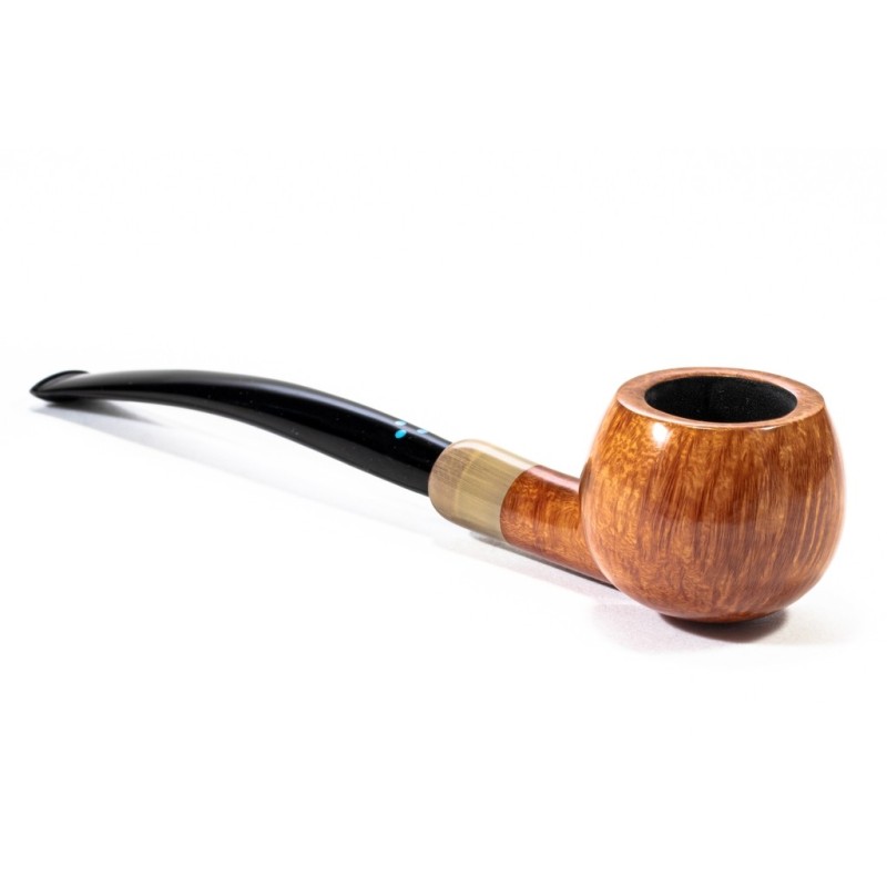 Sasieni 4 Dot Natural Smooth, Color: Light Brown, Shank and Stem slightly arched, True in Horn, Grafting to Flock, Sasieni Pipe Bag included, without filter.
