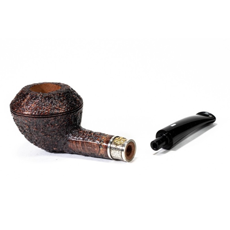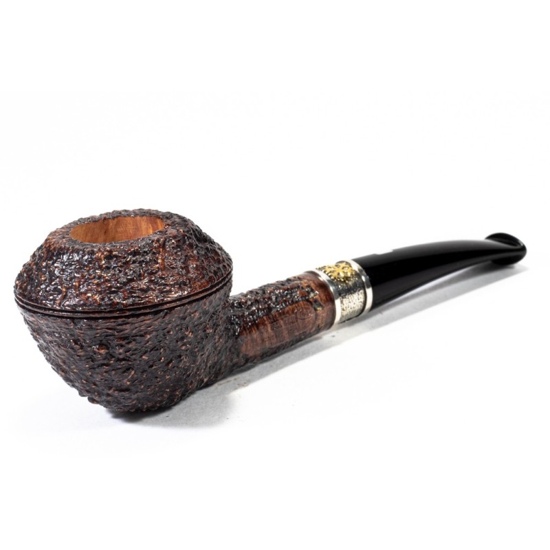 Castello Christmas Sea Rock Briar Rusticated, Pipe n. 52 of 120, Year 2025, Color: Brown, punching Kino, Elaborated True in Silver, without filter, Box with original pipe bag and warranty certificate and authenticity.