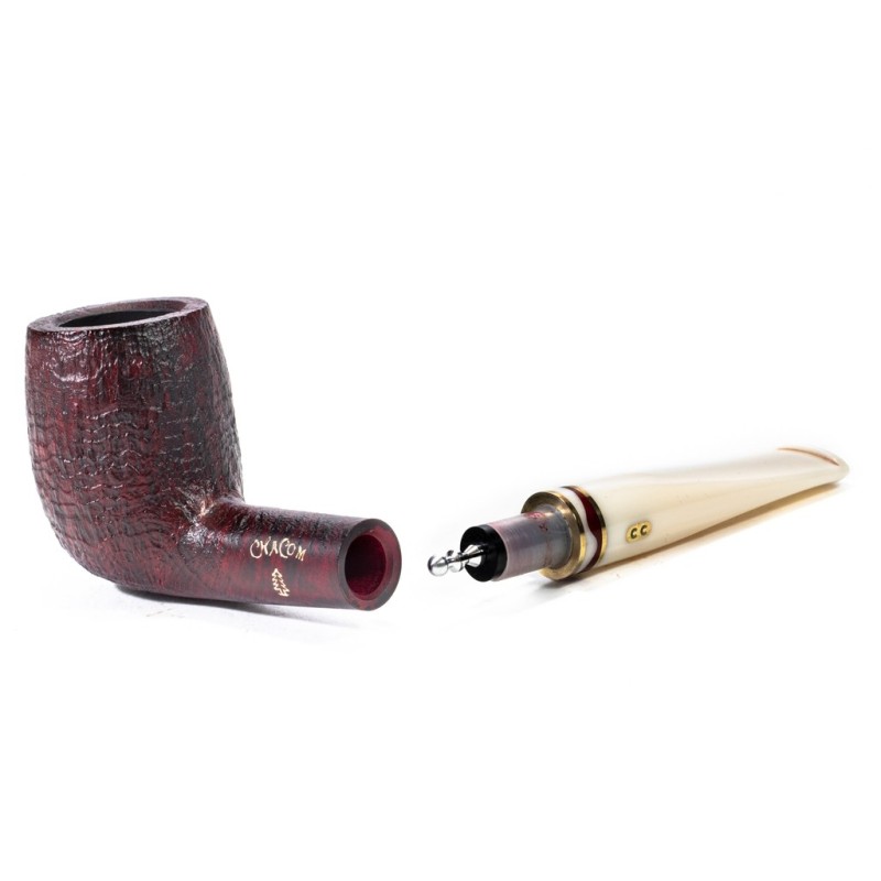 Chacom Noël 2025 Sandblasted, Model 186, Color: Ruby Red, insert on stem in Acrylic and double golden True, Christmas Tree Punching, filter 9mm with adapter, bag and original box, Made in France.
