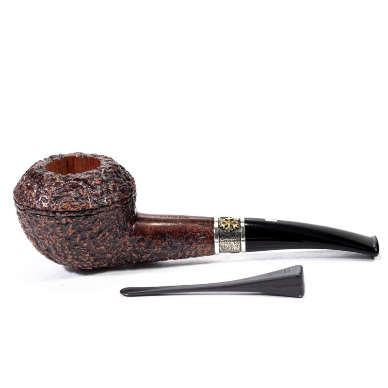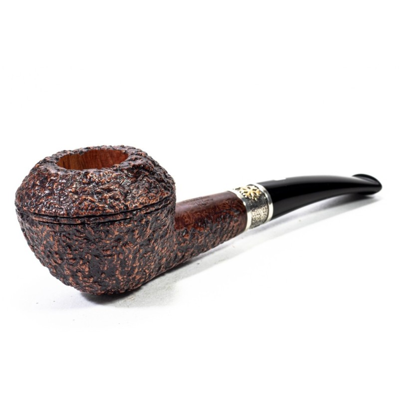 Castello Christmas Sea Rock Briar Rusticated, Pipe n. 43 of 120, Year 2025, Color: Brown, punching Kino, Elaborated True in Silver, without filter, Box with original pipe bag and warranty certificate and authenticity.