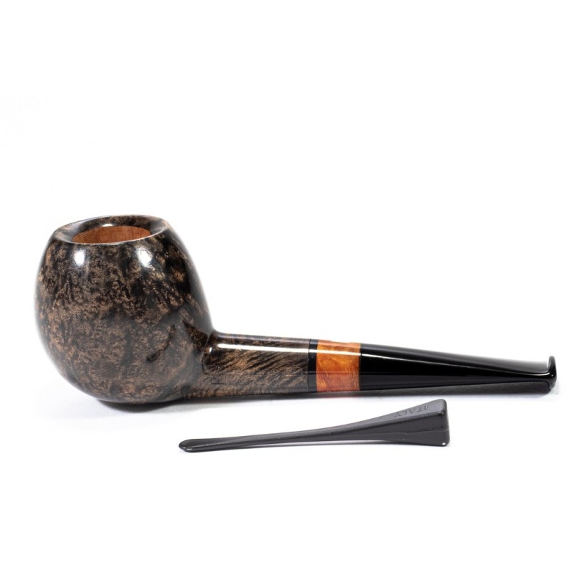 Castello "Castello" KKKK smooth, Color: Light Brown, Model 23, Flared Rim, Punching Castello Logo and Kino, insert on stem in Briar, without filter, Box with original pipe bag and warranty certificate, Made in Cantù, Italy.