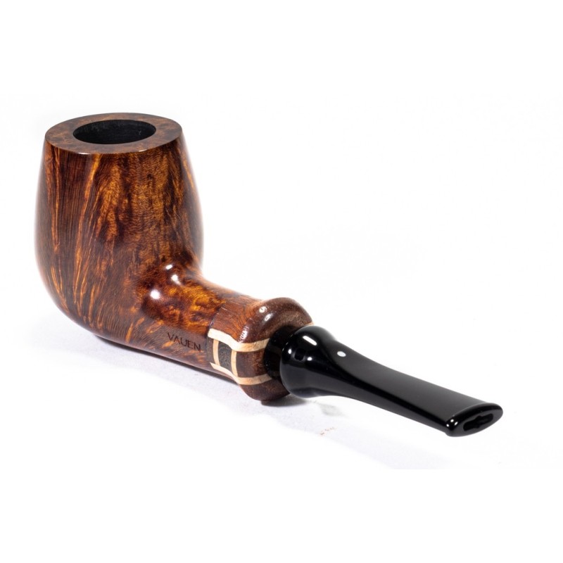 Vauen Gulliver Smooth, Model 111, Color: Brown, inlaid wooden True, saddle stem, filter 9mm with adapter, bag and original box with warranty certificate, Made in Germany.