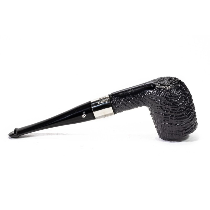 Peterson Deluxe System PSB Sandblasted, Model 6, Color: Black, True in Silver, saddle stem, P/Lip, without filter, bag and original box, Made in Ireland.