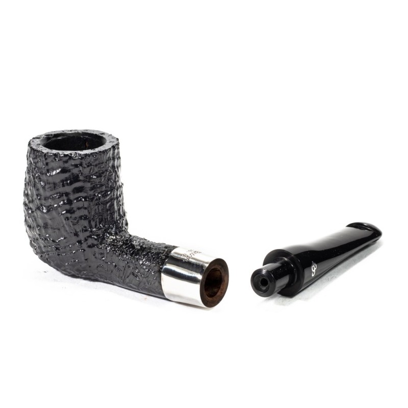 Peterson Deluxe System PSB Sandblasted, Model 106, Color: Black, True in Silver, saddle stem, P/Lip, without filter, bag and original box, Made in Ireland.