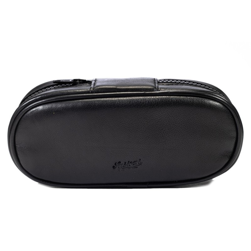 Pipe Bag for 2 pipes in Nappa leather, 1 compartment for tobacco or accessories, Color: Black.