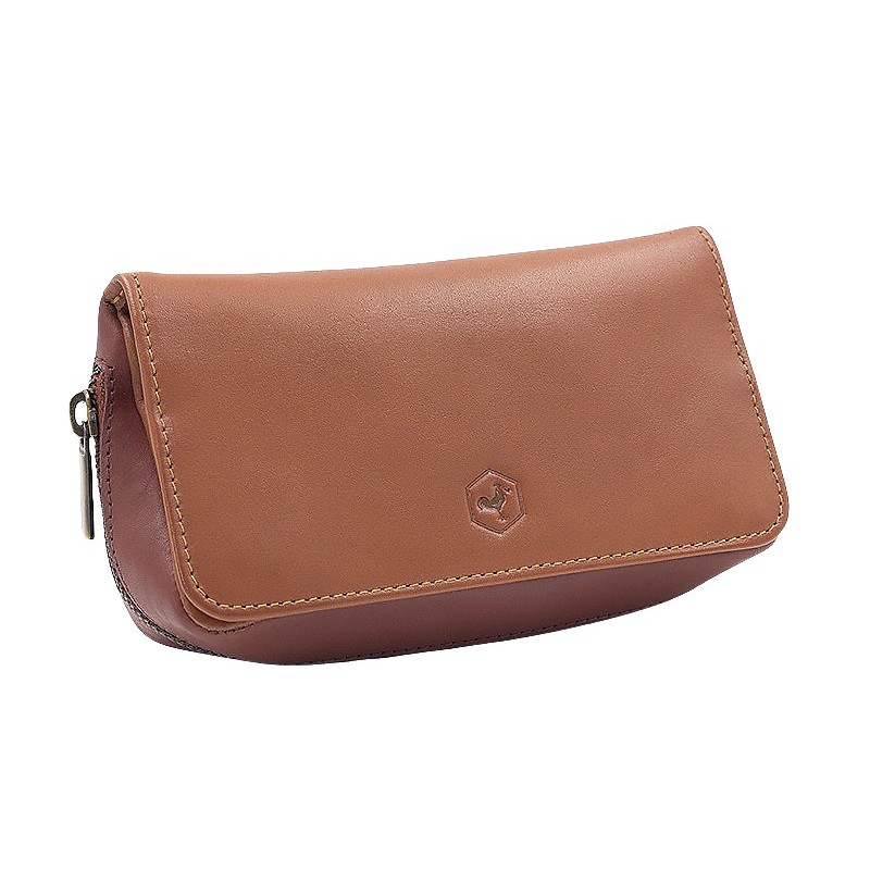 Pipe bag in leather for 2 pipes, with Pipe Tamper and pipe cleaners holder, 2 zip, 1 rubber lined pocket to carry and keep around 50g of tobacco fresh, Color: Brown.