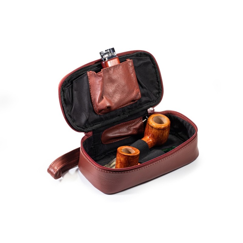 - Tobacco and Pipe Bag Lubinski - 2 Pipes - Cognac