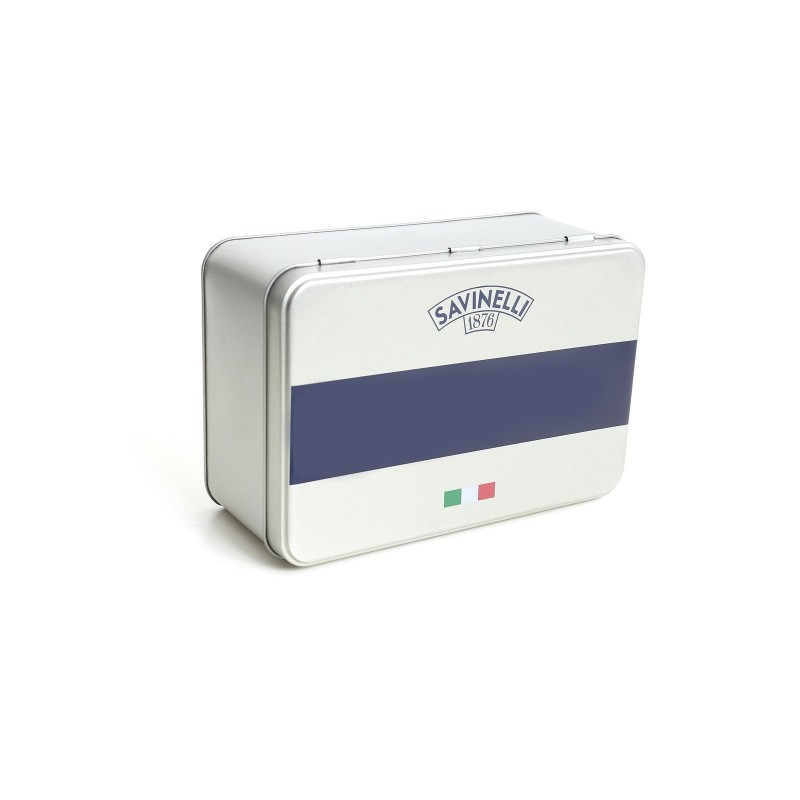 Comoda confezione in latta con marchio Savinelli per raccogliere tutto l'occorrente per la pulizia e la manutenzione della pipa.