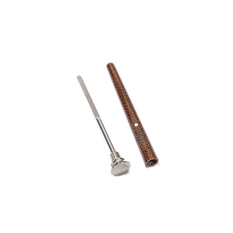 Pigino Curapipe Dunhill The White Spot "Junior" Canvas Marrone, premi tabacco con base circolare placcata in Palladio e paletta/punta.