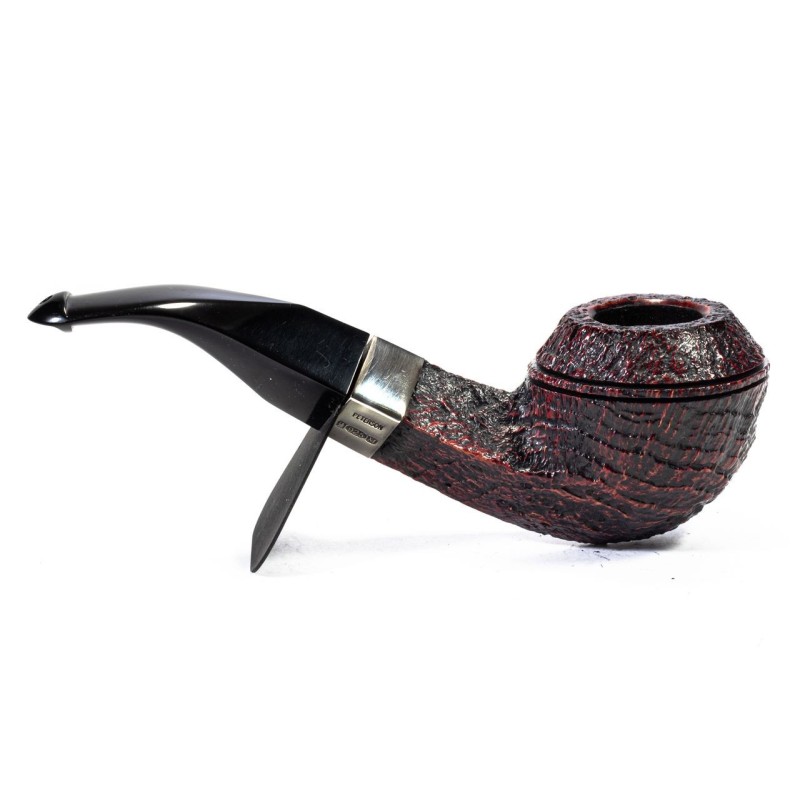 Peterson Sherlock Holmes Squire Sabbiata, Colore: Marrone Scuro, Vera in Argento, bocchino palatale, senza filtro, sacchetto e scatola originale, Made in Ireland.