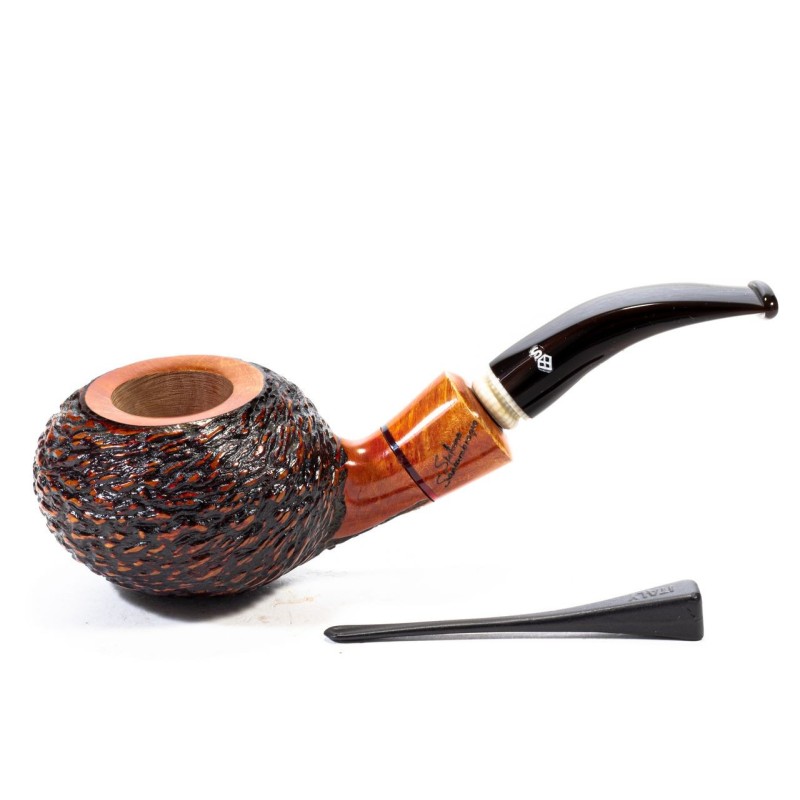 Santambrogio Rusticata Grande, Colore: Marrone, Rim Liscio, Vera in Radica, inserto in Galalite sul bocchino, senza filtro, Made in Italy.