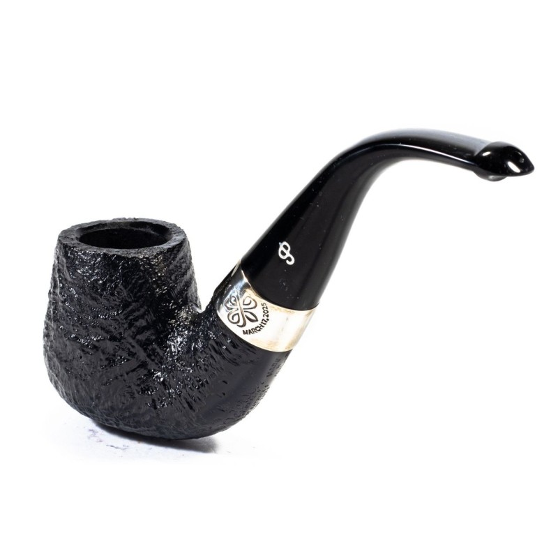 Peterson St. Patrick's Day 2024 Sabbiata, Modello 221, Vera in Argento con incisione del Quadrifoglio, bocchino palatale, senza filtro, sacchetto e scatola originale, Made in Ireland.
