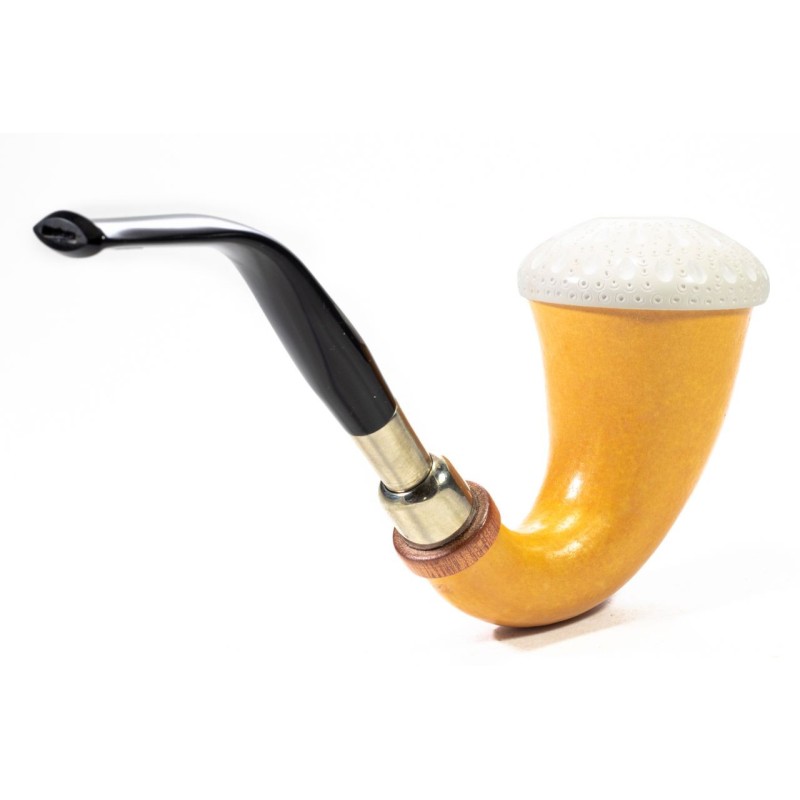 CPW Calabash Liscia Naturale, Colore: Marrone Chiaro, Cap Rusticato in Schiuma Di Mare, doppia Vera in Argento e Radica, senza filtro, custodia rigida in pelle rossa a misura. Made in Turkey.