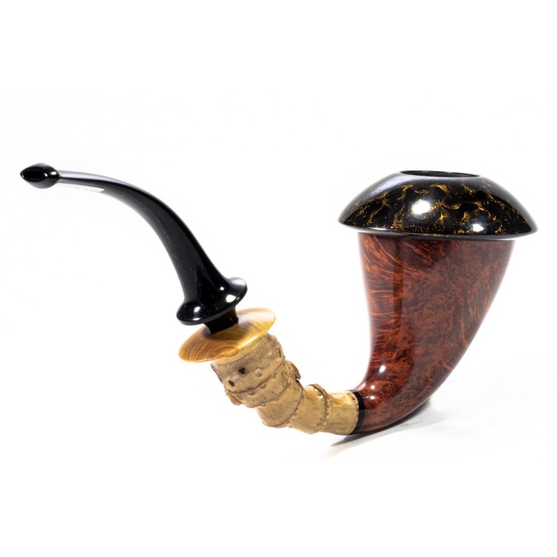 C-Pipe Gruppo 5 Liscia, Handmade, Calabash Reverse, Colore: Marrone, Cannello in Bamboo, bocchino a sella, senza filtro, Made in Cina.