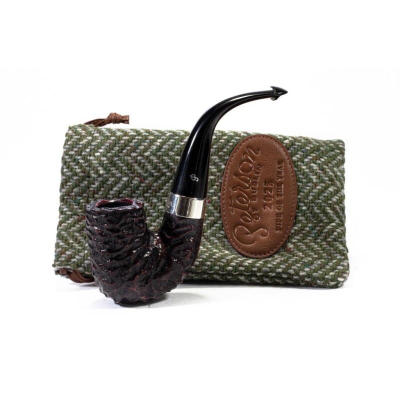 Peterson Pipe of The Year 2025 Rusticata, Pipa N° 524 di 1000, Colore: Marrone Scuro, Vera in Argento, bocchino palatale, senza filtro, sacchetto e scatola originale, Made in Ireland.