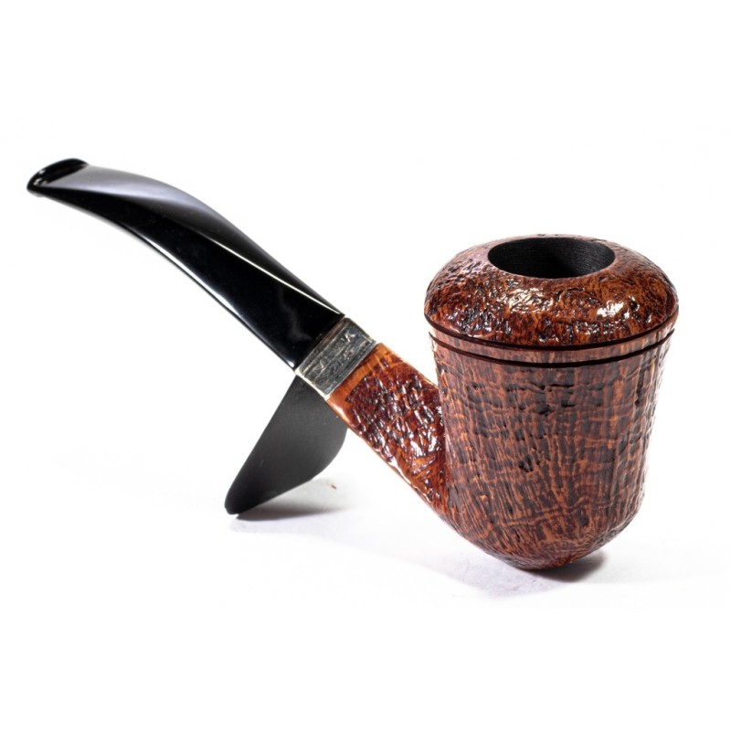 Ser Jacopo Domina 2025 Sabbiata, Pipa N° 20 di 355, Colore: Marrone, Vera in Argento Elaborata, senza filtro, scatola e sacchetto originale, Made in Italy.