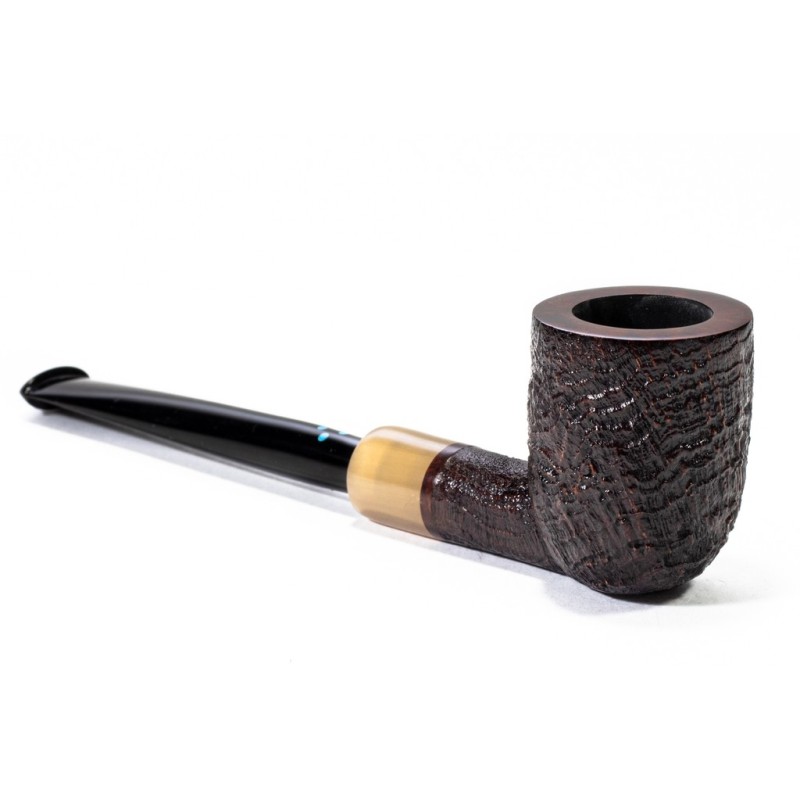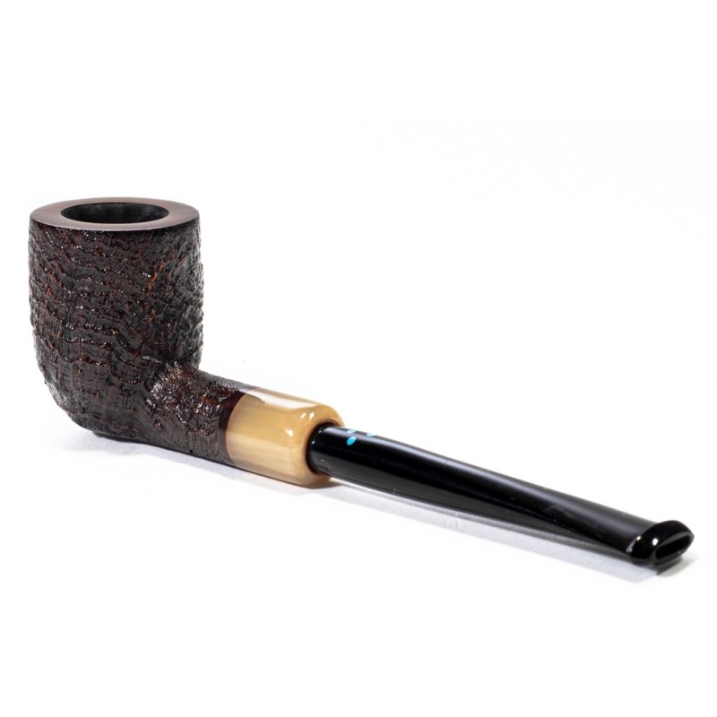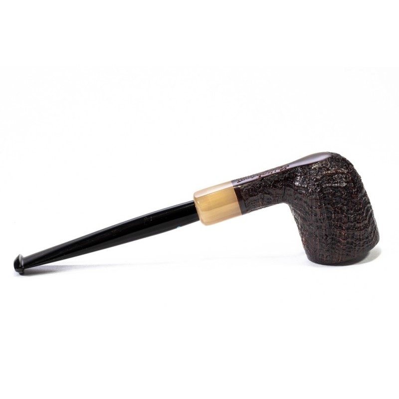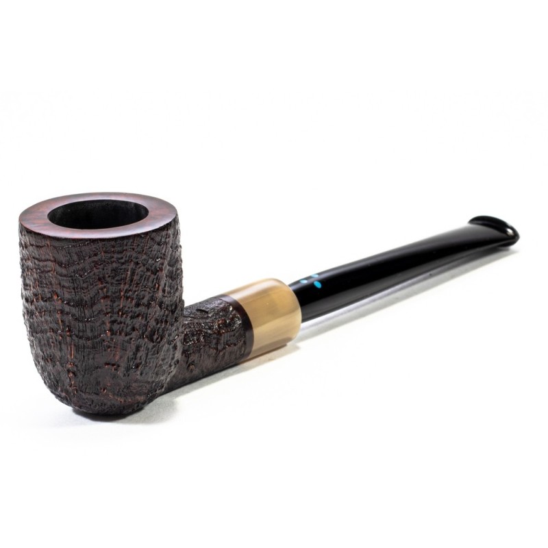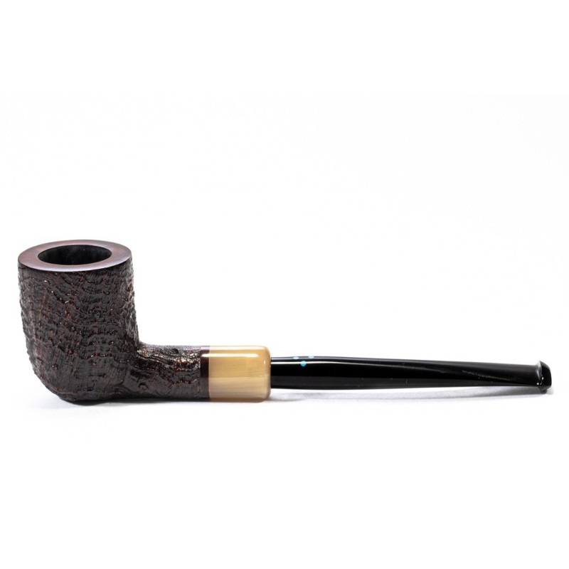 Sasieni 4 Dot Ruff Root Dark Sabbiata, Colore: Nero, Vera in Corno, innesto a flock, Borsa Portapipa Sasieni Inclusa, senza filtro.
