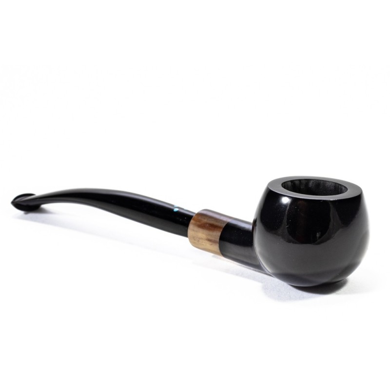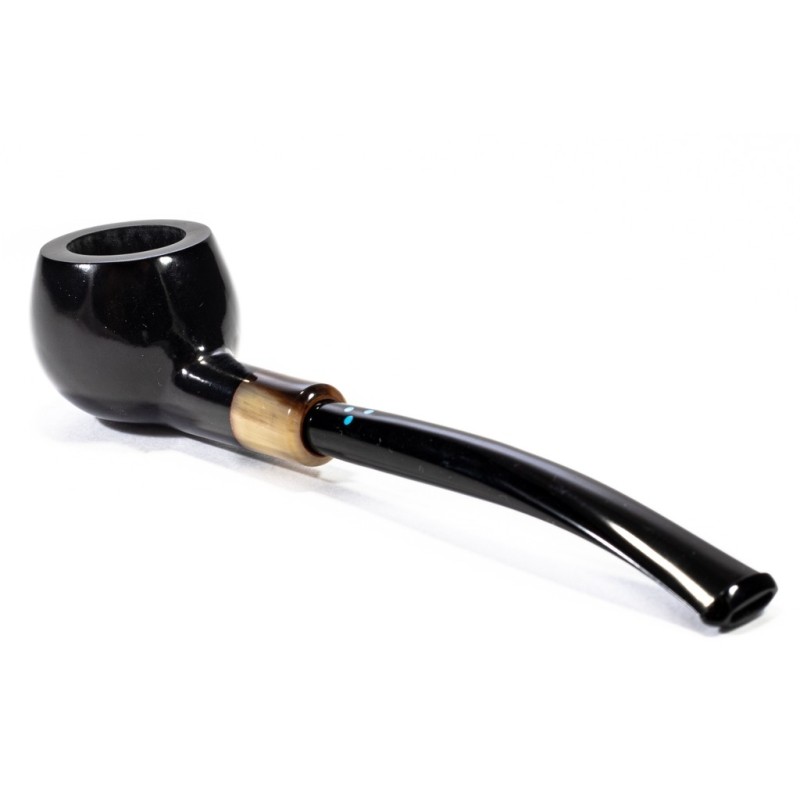Sasieni 4 Dot Dark Liscia, Colore: Nero, Cannello e Bocchino leggermente arcuati, Vera in Corno, Innesto a Flock, Borsa Portapipa Sasieni Inclusa, senza filtro.