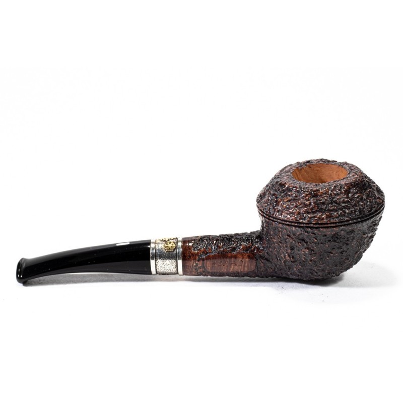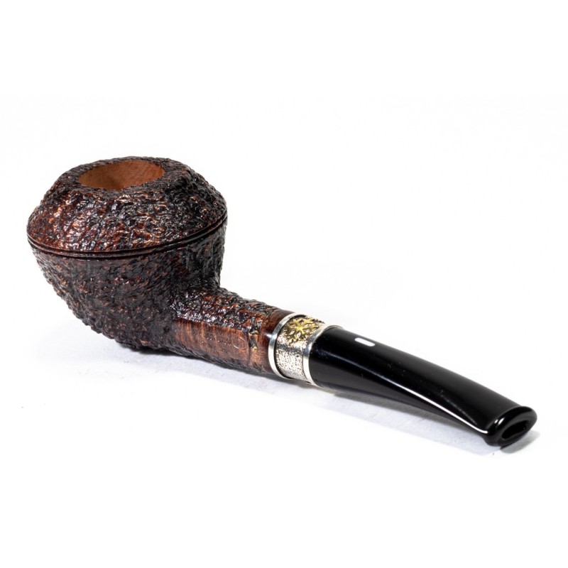 Castello Christmas Sea Rock Briar Rusticata, Pipa n. 52 di 120, Anno 2025, Panel Colore: Marrone, punzonatura Kino, Vera Elaborata in Argento, senza filtro, scatola con sacchetto originale e certificato di garanzia ed autenticità.