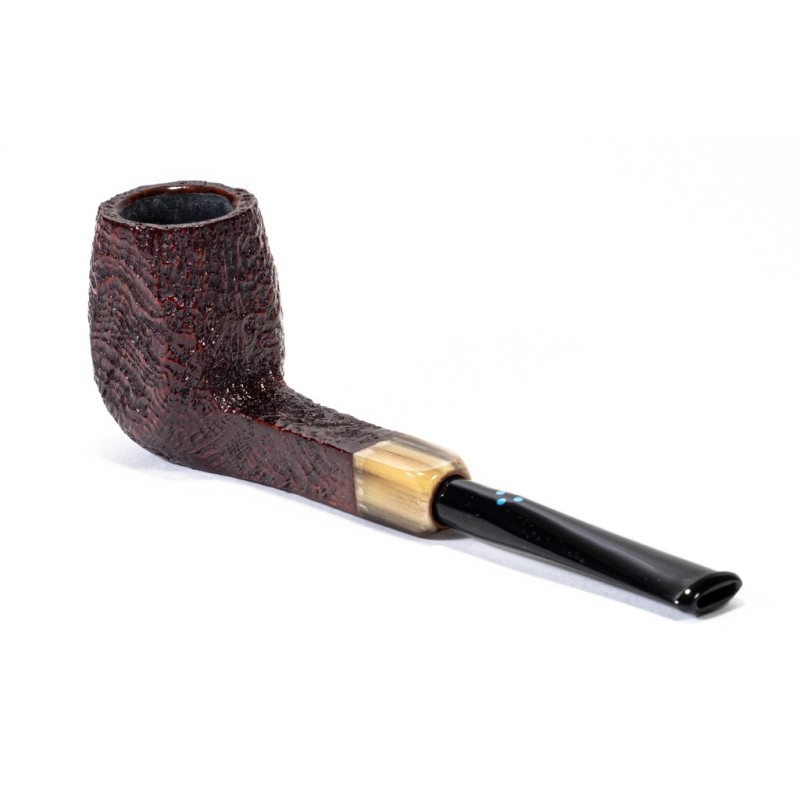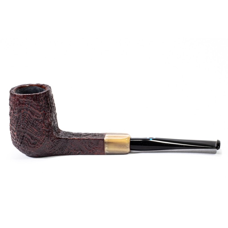 Sasieni 4 Dot Walnut Ruff Sabbiata, Colore: Marrone, Vera in Corno, Innesto a Flock, Borsa Portapipa Sasieni Inclusa, senza filtro.