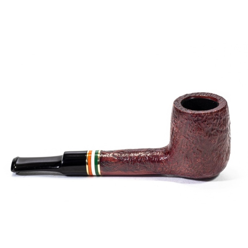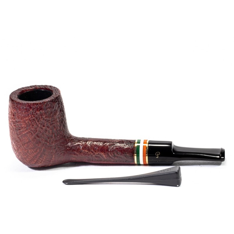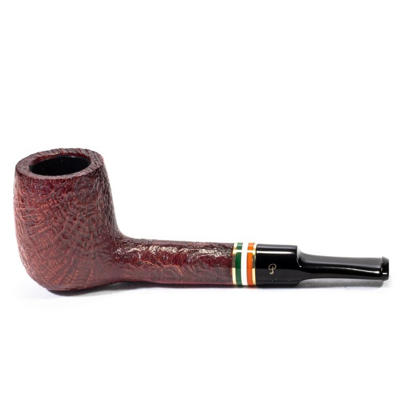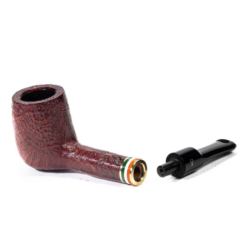 Peterson St. Patrick's Day 2026 Sabbiata, Modello 53, Vera in Metacrilato con Tricolore della bandiera Irlandese Racchiusa da due anelli dorati, bocchino a sella, senza filtro, sacchetto e scatola originale, Made in Ireland.