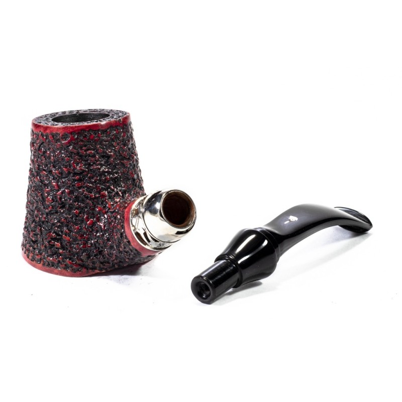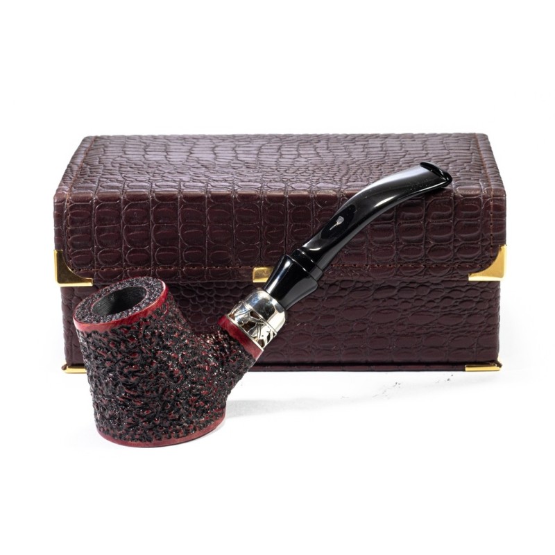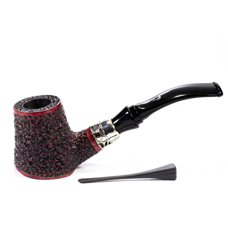 Mastro Geppetto Pipe Of The Year 2025 Rusticata, Vera in Argento Elaborata, bocchino a sella, senza filtro, scatola personalizzata e sacchetto originale, Made in Italy.