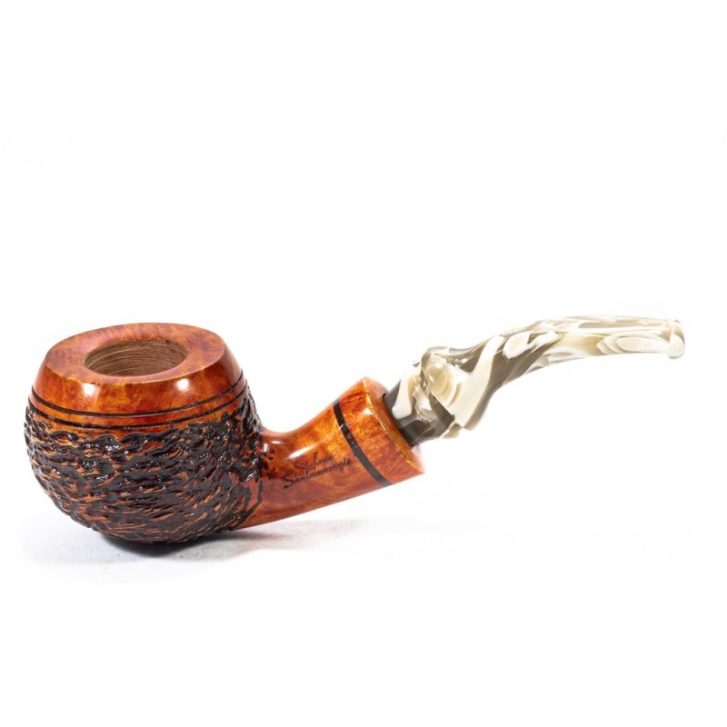 Santambrogio Rusticata Grande, Colore: Marrone, Rim Liscio, Vera in Radica e Metacrilato, bocchino a sella, senza filtro, Made in Italy.